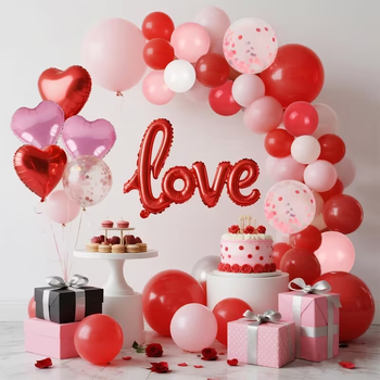 Décorations de mariage, ballons pour la Saint-Valentin, rouge, rose, blanc, kit de guirlande d'arche de ballons DIY, ballons en feuille de cœur rouge