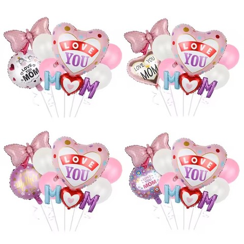 Mother's Day Theme Balloons Love You Mom Aluminum Film Balloons Mother's Day Heart-to-Heart Party Decoration Balloons