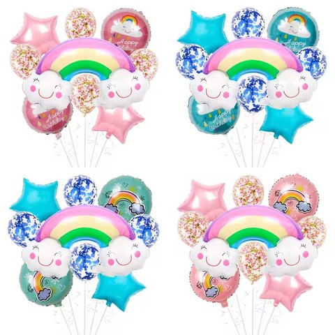10pcs Set Rainbow Clouds Foil Balloon Children's Balloon for Gender Reveal Decoration Birthday Party Supplies